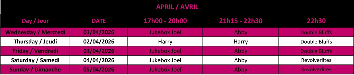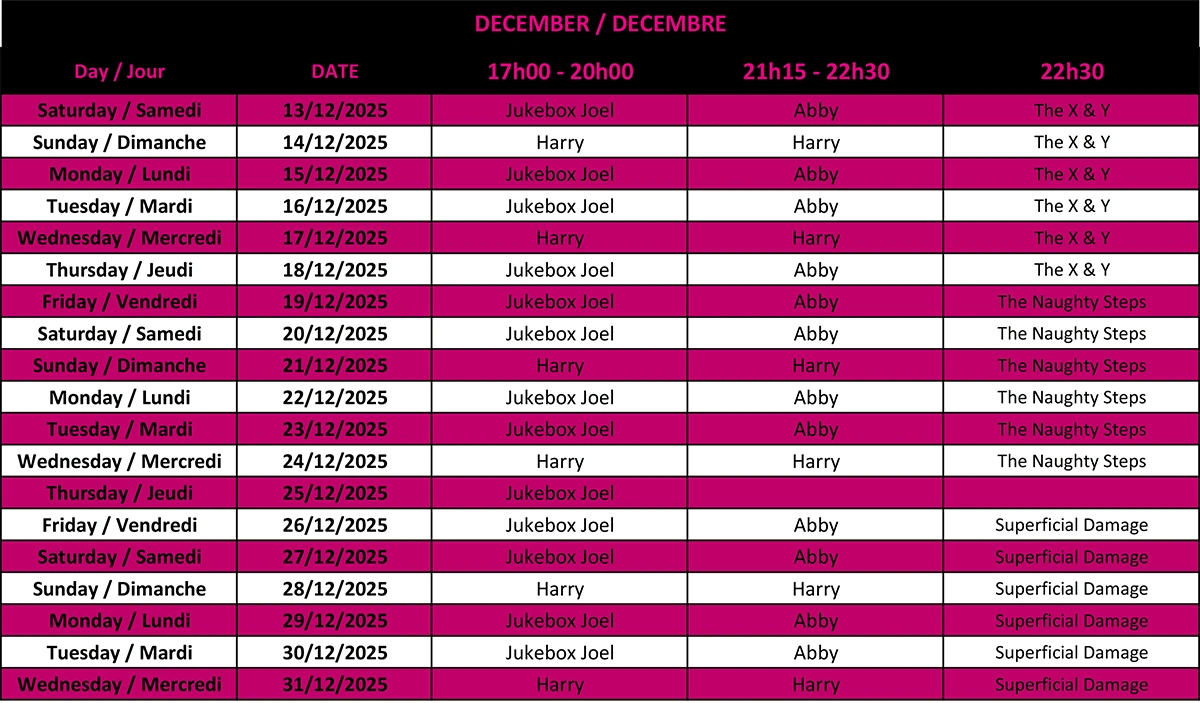 Live-Music Live-music everyday Every day come vibrate, dance and sing at the live concerts at the Cavern Bar Live in Morzine. Apres-ski concerts from 5 pm to 8 pm and in the evening, 1st party from 9.15 pm to 10.30 pm and the second party at 10.30 pm to the closing.